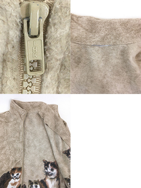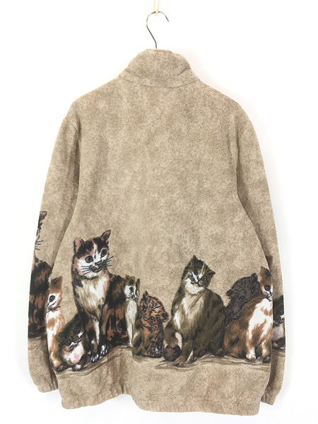 古着 90s 記念撮影 お座り 猫 ねこ マルチ アニマル フリース ジャケット L位
