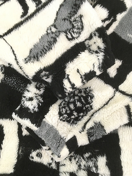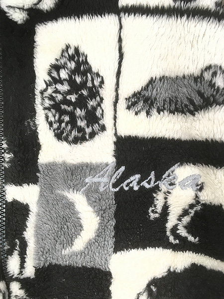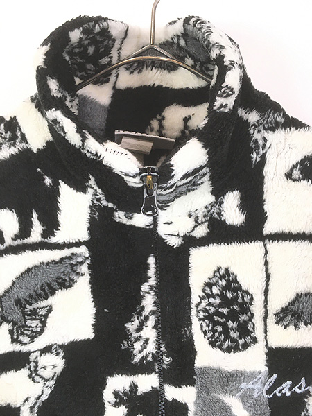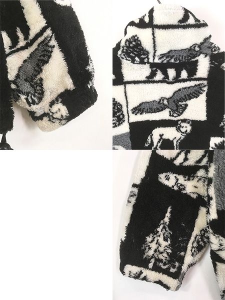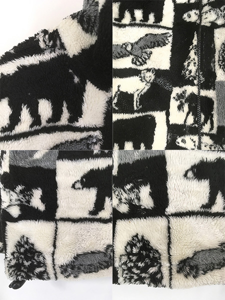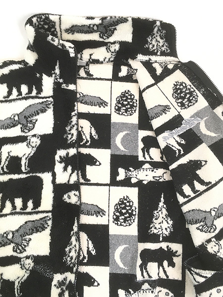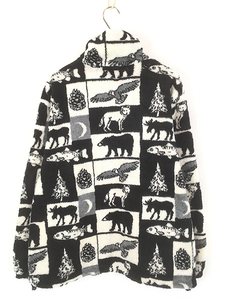 古着 90s USA製 OCEAN EAST ウルフ イーグル クマ ヘラジカ マルチ アニマル 総柄 フリース ジャケット M