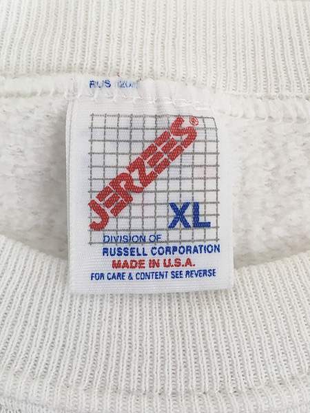 古着 80s USA製 Jerzees 無地 プレーン セットイン スウェット トレーナー ホワイト XL