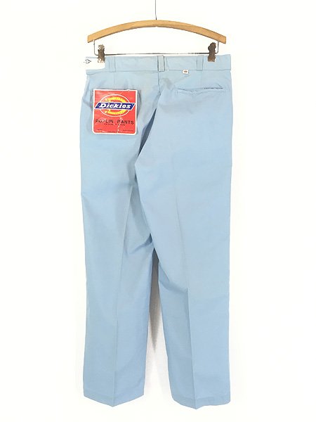 「Deadstock」 古着 80s USA製 Dickies 846 コットンサテン ワーク チノ パンツ ストレート ライトブルー W33 L30
