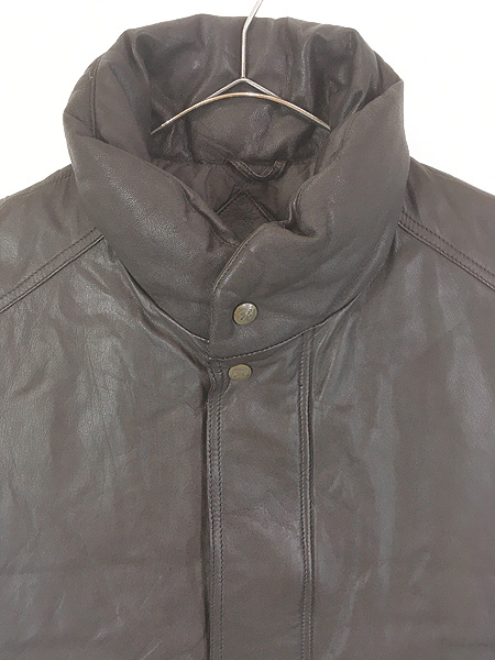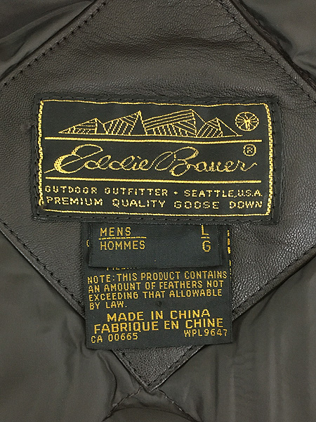 古着 80s Eddie Bauer 本革 レザー ハイネック ダウン ベスト L