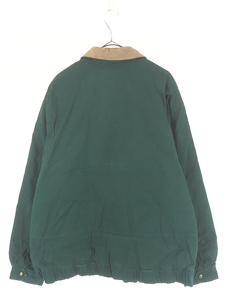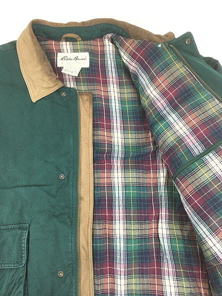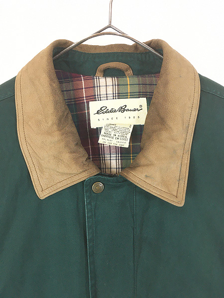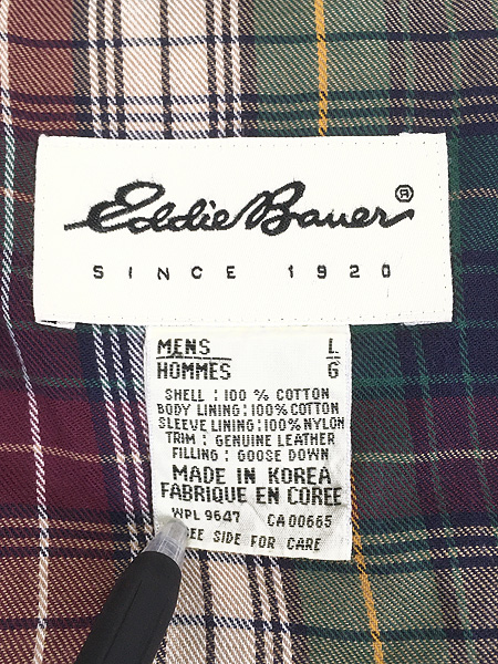 古着 90s Eddie Bauer 襟 本革 レザー コットン ツイル ダウン ジャケット L