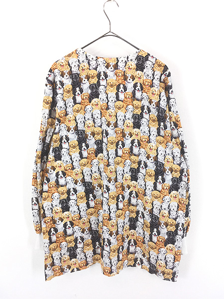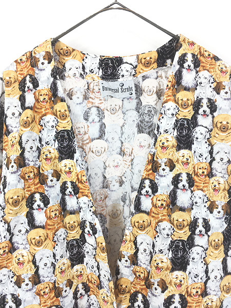 レディース 古着 90s Universal Scrubs 犬 マルチ アニマル 総柄 ノーカラー ホスピタル シャツ ジャケット L