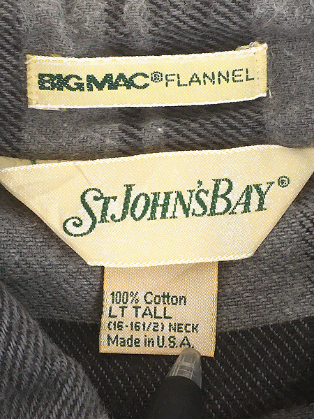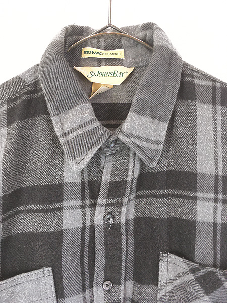 古着 80s USA製 St John's Bay BIG MAC ブラック × グレー バッファロー チェック ヘビー フランネル シャツ ヘビネル XL TALL