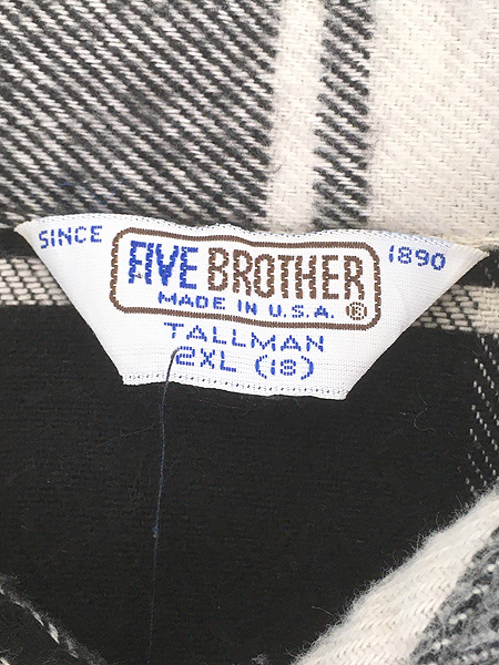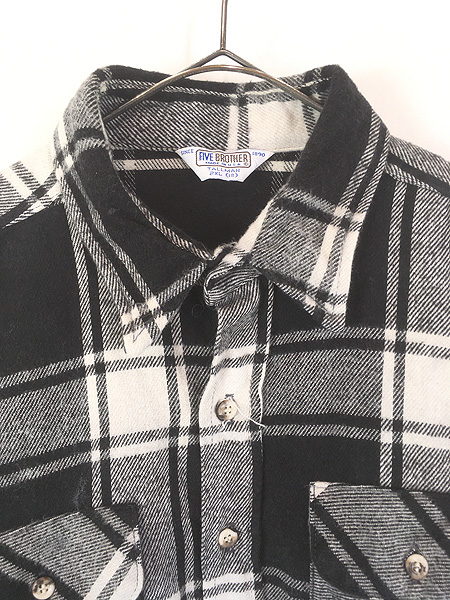 古着 80s USA製 FIVE BROTHER TALL MAN ブラック × ホワイト バッファロー チェック ヘビー フランネル シャツ ヘビネル 2XL