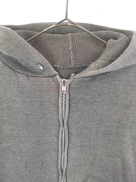 古着 60s 無地 ソリッド 裏サーマル Wフェイス セパポケ スウェット パーカー レアカラー チャコールグレー XL位