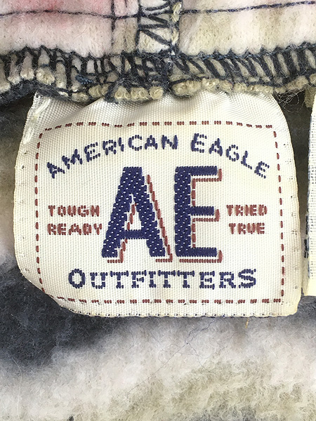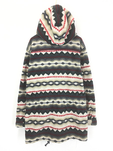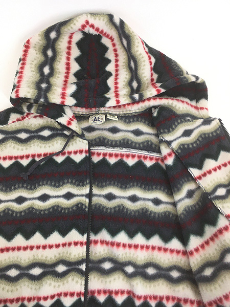 古着 90s American Eagle ネイティブ ボーダー フーデッド フリース ジャケット パーカー ロング丈 M