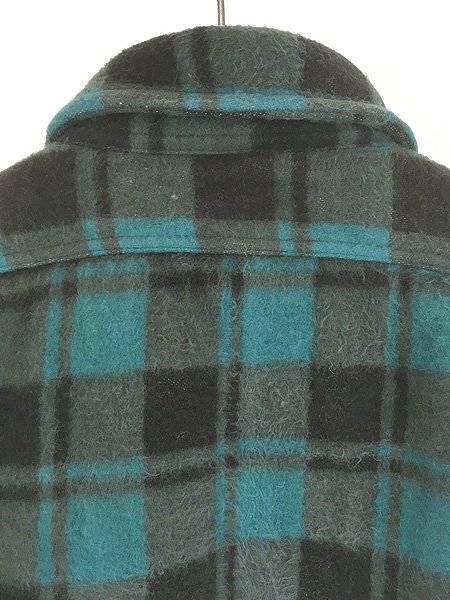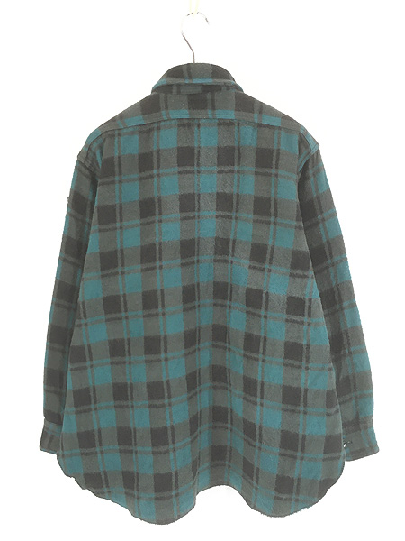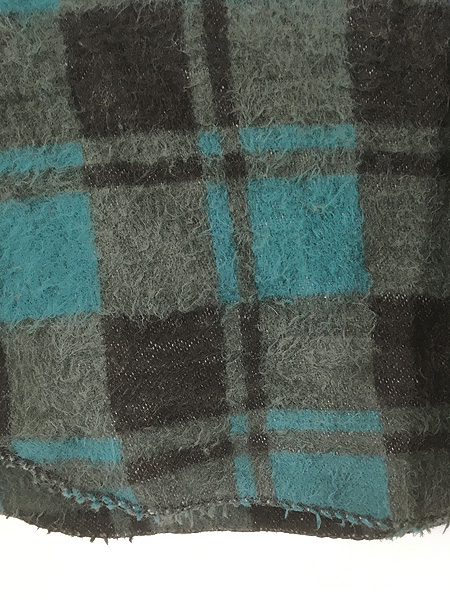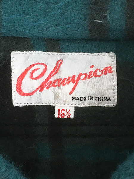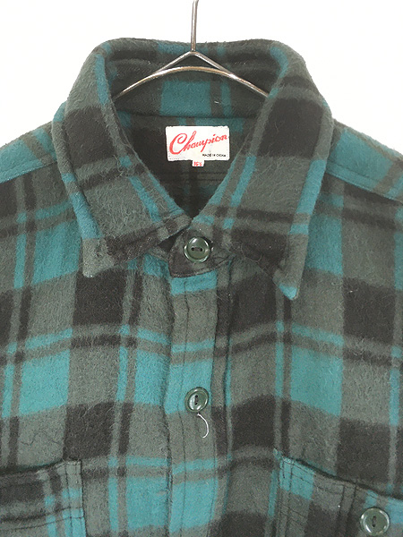 古着 60s Champion マチ付き グリーン × ブラック チェック ヘビー フランネル シャツ ヘビネル 16 1/2