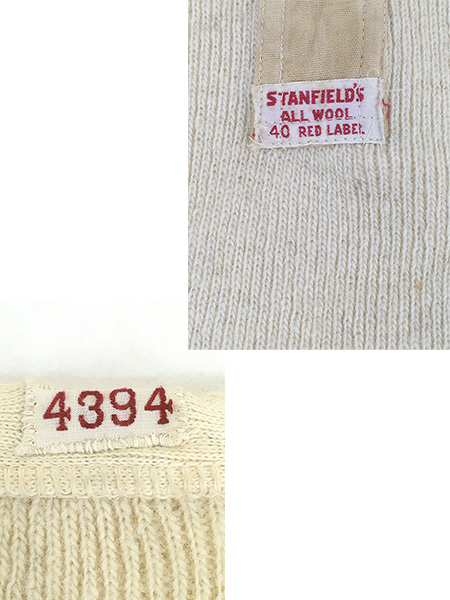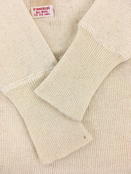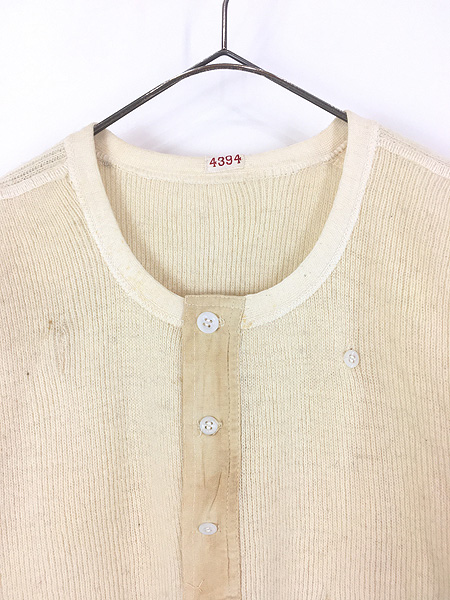 古着 40s STANFIELD'S フラップ付 ヘンリーネック ウール ニット サーマル アンダー シャツ トップス 40