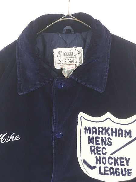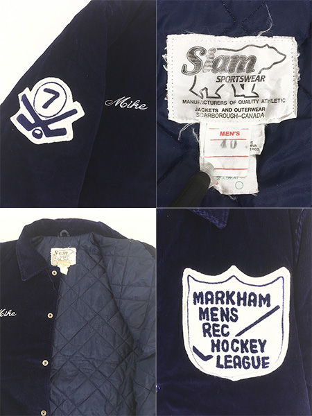 古着 80s Canada製 Siam Sportswear パデッド 襟付 コーデュロイ ホッケー ジャケット スタジャン 40
