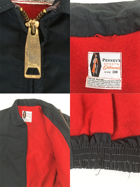 古着 50-60s Penney's レッド フリース ライナー ナイロン アンチフリーズ ジャケット 38