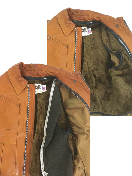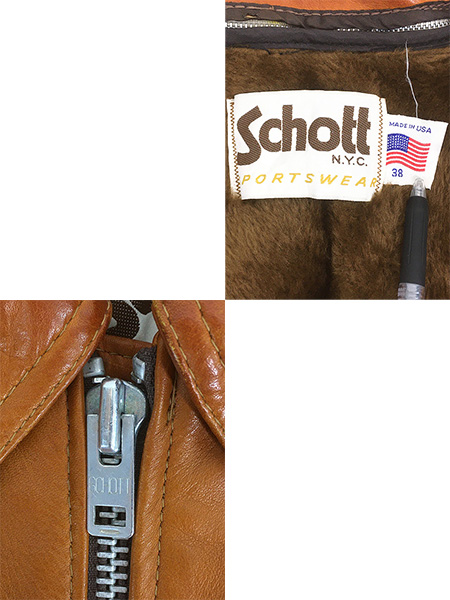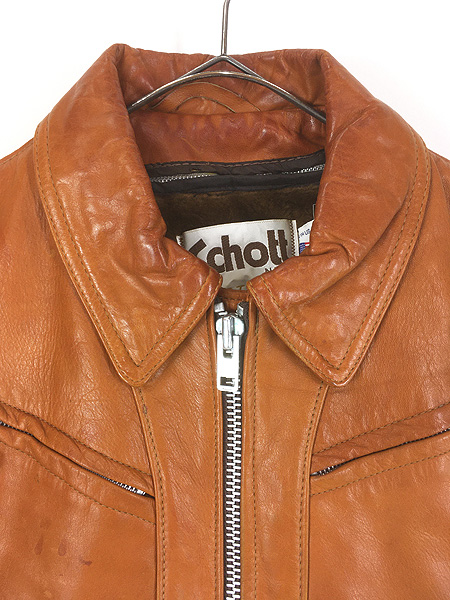 古着 70s USA製 Schott 「逆ハ」 襟付き 本革 レザー ジャケット ライナー完備!! 38