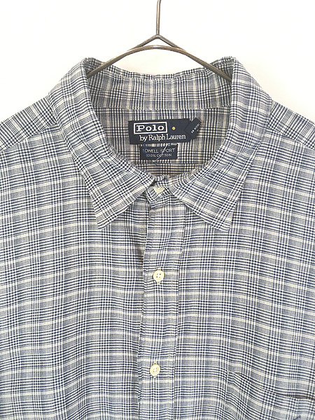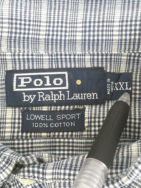 古着 Polo Ralph Lauren 「LOWELL SPORT」 ネイビー×ホワイト チェック ポケット付 シャツ XXL