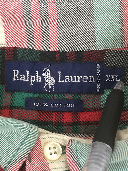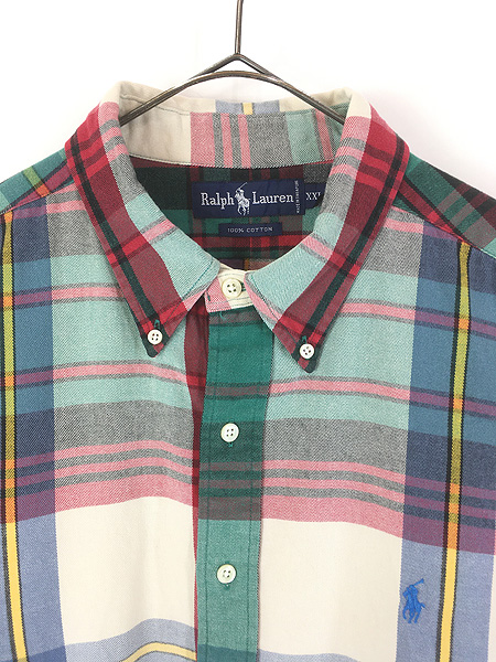 古着 90s Ralph Lauren カラフル マルチ チェック フランネル BD シャツ ネルシャツ XXL