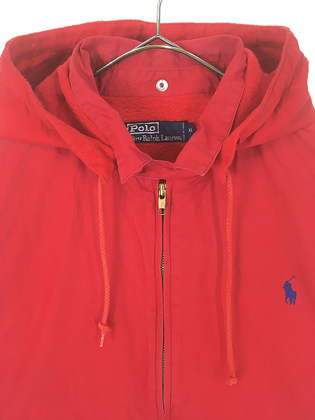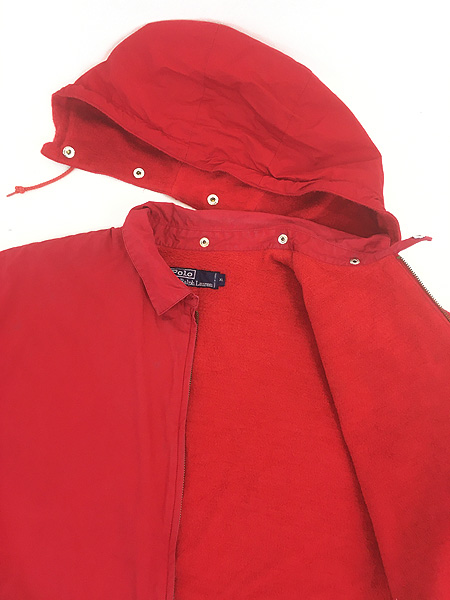 古着 90s Polo Ralph Lauren 裏地 フリース ワンポイント ソリッド 2way コットン スウィング トップ ジャケット レッド XL