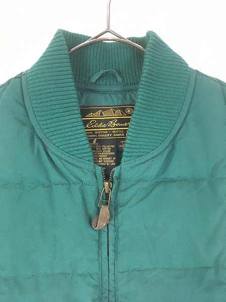 古着 80s Eddie Bauer 名作 「Downlight Canadian Vest」 キルティング ダウン ライト カナディアン ベスト グリーン L
