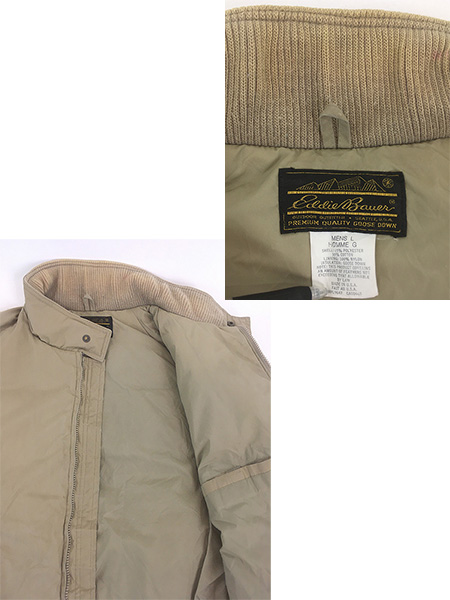 古着 80s Eddie Bauer ドッグイヤー グース ダウン クラシック ラグラン ジャケット カーキ L