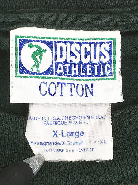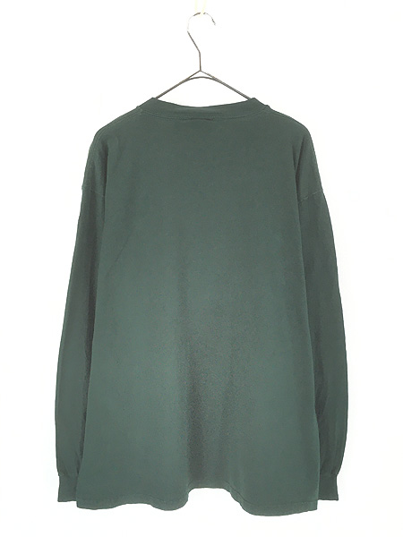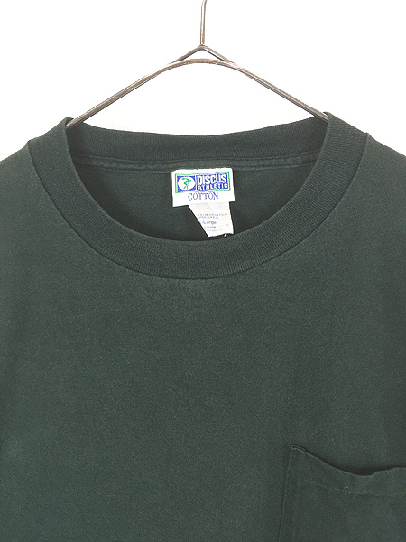 古着 90s USA製 DISCUS 無地 ソリッド 100%コットン ポケット付 長袖 Tシャツ ロンT ポケT グリーン XL