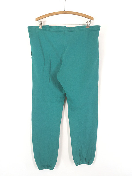 古着 90s USA製 Russell 無地 プレーン ポケット付 スウェット パンツ エメラルド L