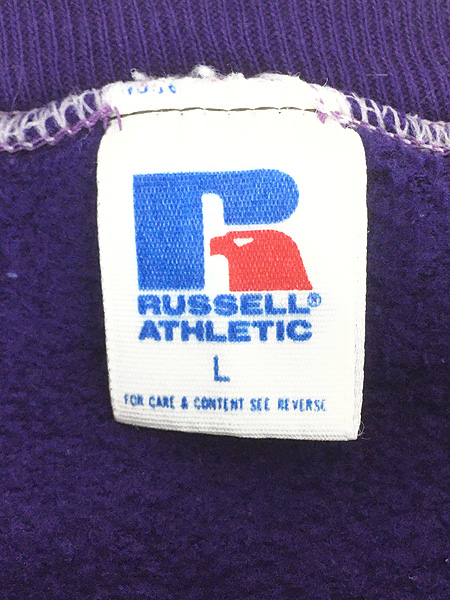 古着 80s USA製 Russell ピンク ステッチ 無地 プレーン セットイン スウェット トレーナー パープル L