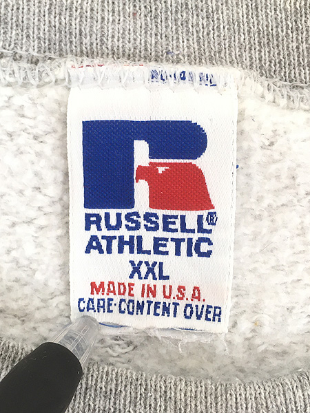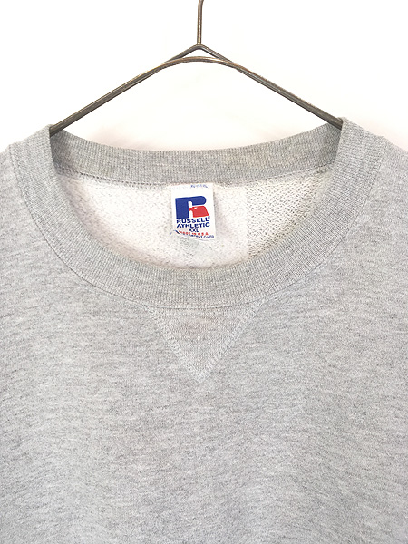古着 90s USA製 Russell 無地 プレーン 前V セットイン スウェット トレーナー グレー XXL