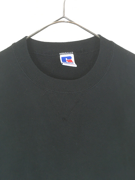 古着 90s USA製 Russell 無地 プレーン 前V セットイン スウェット トレーナー ブラック L
