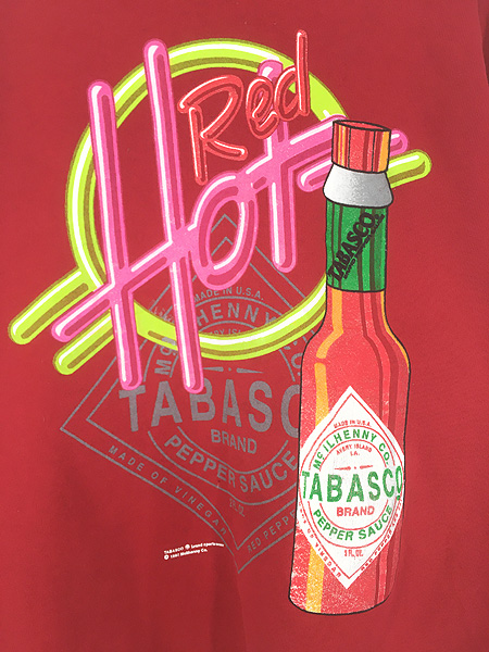 古着 90s TABASCO タバスコ 企業 ネオン サイン 両面 プリント スウェット トレーナー XL位