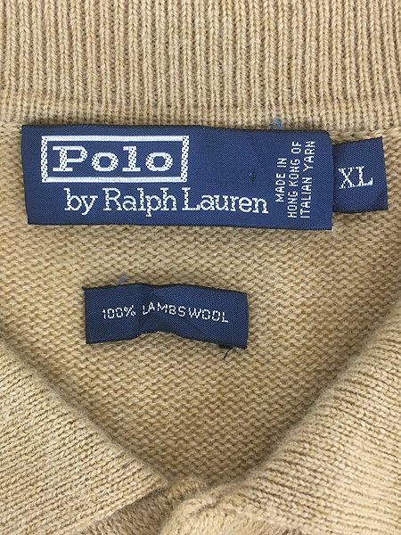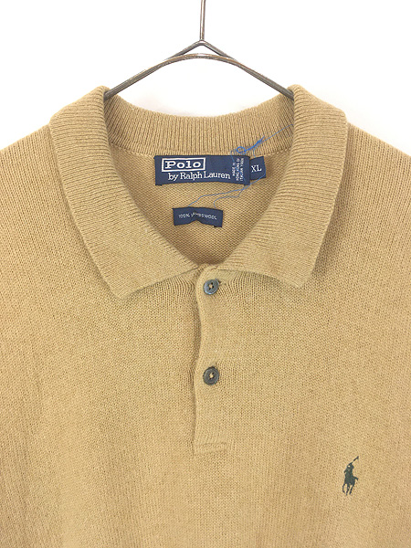 古着 Polo Ralph Lauren ワンポイント 襟付き 上質 ラムウール ニット セーター キャメル XL