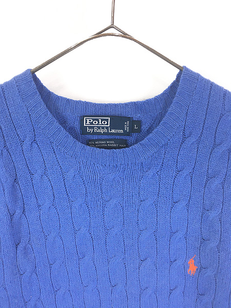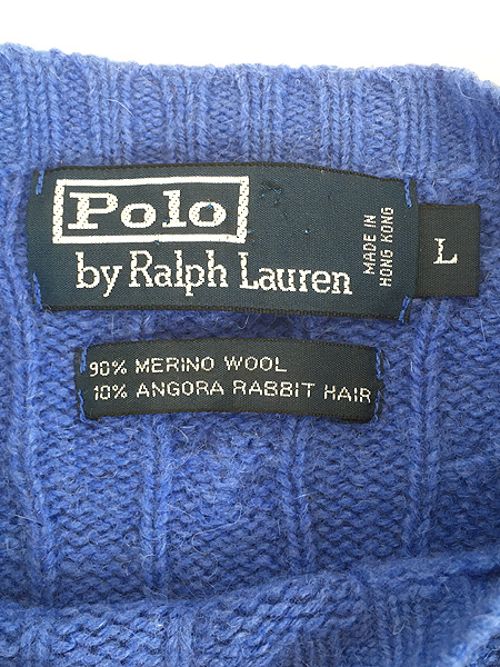 古着 Polo Ralph Lauren ワンポイント 上質 アンゴラ ウール ニット セーター ライトブルー L