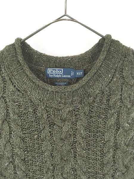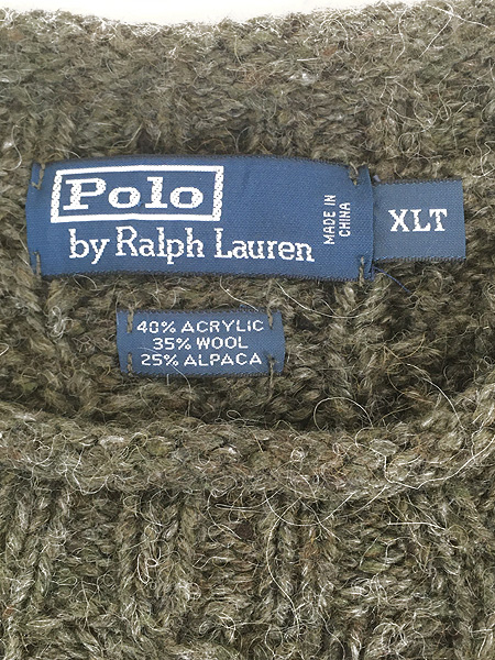 古着 Polo Ralph Lauren ケーブル編み ロールネック ミックス アルパカ ウール ニット セーター ブラウン XL Tall