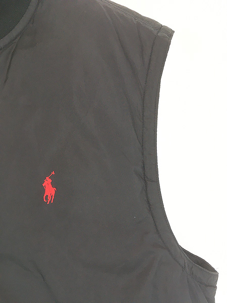 古着 Polo Ralph Lauren ワンポイント 軽量 ポリエステル シェル ダウン ベスト ブラック XL