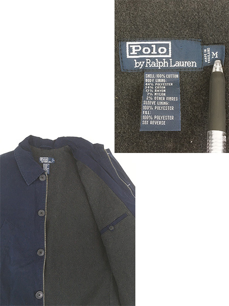 古着 Polo Ralph Lauren 裏地 フリース コットン キャンバス ミドル ジャケット コート ネイビー M