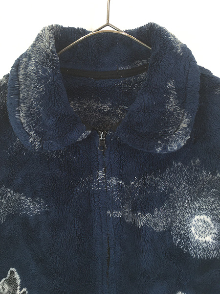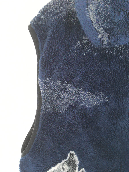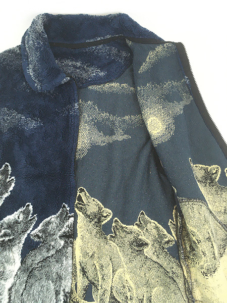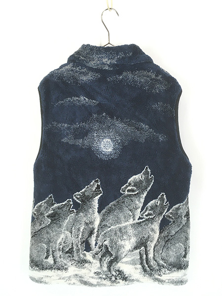 古着 オオカミ ウルフ 遠吠え アニマル 襟付き フリース ベスト L位