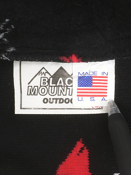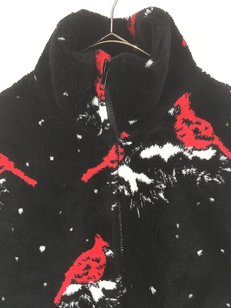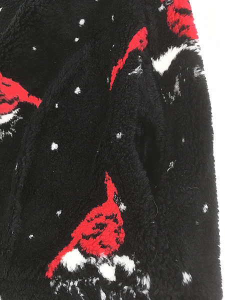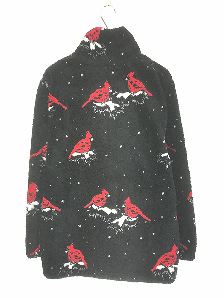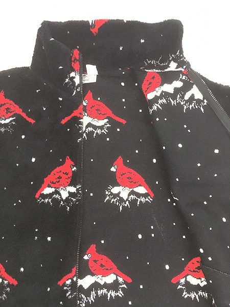 古着 90s USA製 BLACK MOUNTAIN 鳥 カーディナル 総柄 フリース ジャケット L