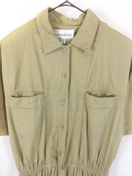 レディース 古着 80s USA製 Andrew Harvey 半袖 シャツ コットン ワンピース ロング丈 10 M位