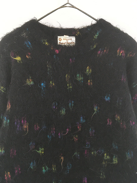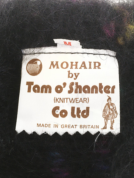 レディース 古着 80s UK製 Tam o'Shanter 豪華 72% ネオン ネップ ブラック シャギー モヘア ニット セーター 黒!! M