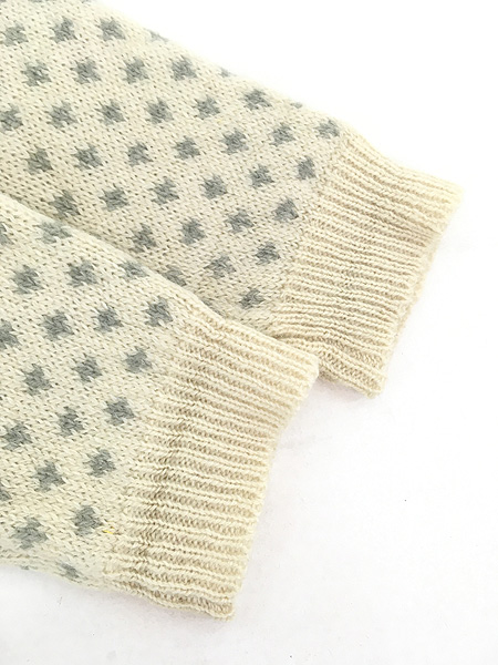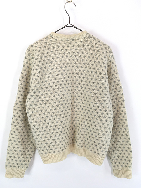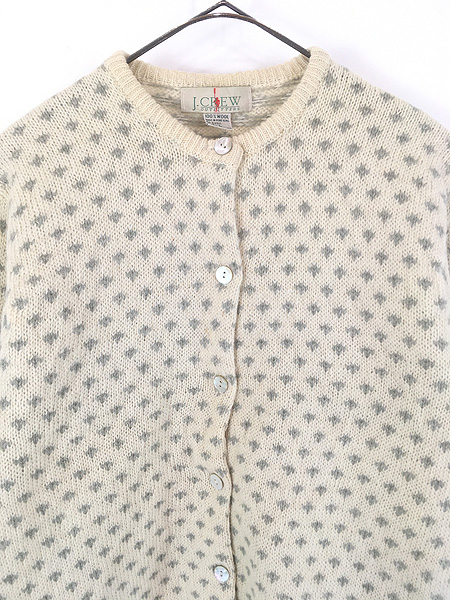 レディース 古着 90s J Crew バーズアイ 総柄 シェルボタン ウール ニット カーディガン L