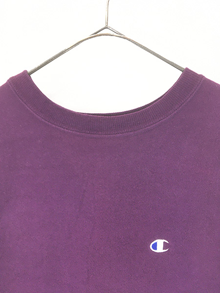 古着 90s USA製 Champion Reverse Weave 青目 ワンポイント リバース スウェット トレーナー 紫 L位
