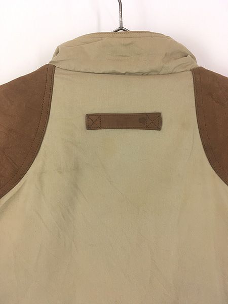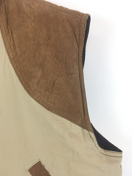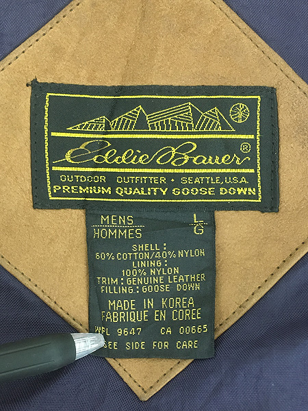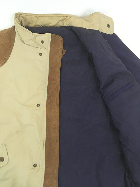 古着 80s USA製 Eddie Bauer 本革 レザー ガンパッチ コットン ナイロン シェル グース ダウン ベスト L