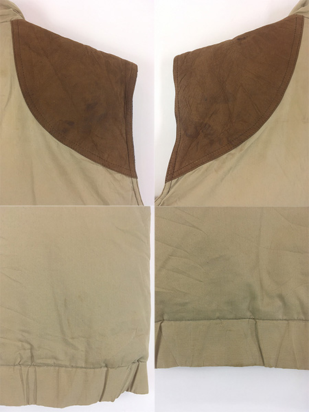 スエードレザーのガンパッチ・内側にはグースダウンがたっぷり・スナップボタン。