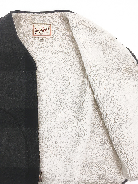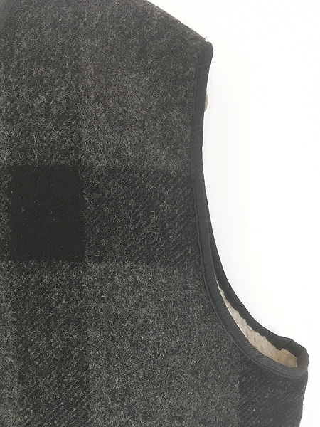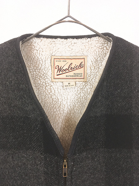 古着 90s USA製 WoolRich ボア フリース ライナー ブラック × グレー ブロック チェック ウール ベスト M