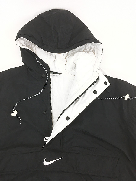 古着 90s NIKE 裏地 パデット キルティング 黒×白 2トーン ナイロン ジャケット パーカー L