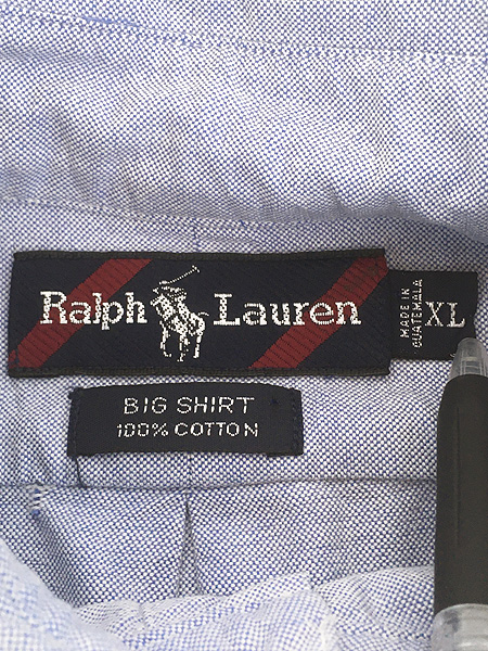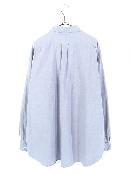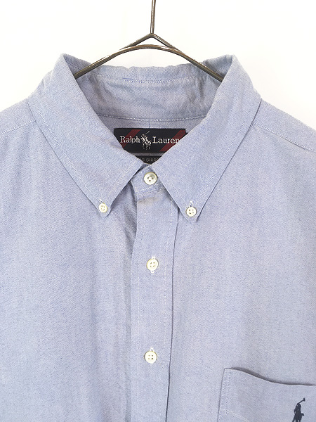 古着 90s Ralph Lauren 「BIG SHIRT」 ワンポイント ソリッド ポケット付 OXフォード BD シャツ 水色 XL