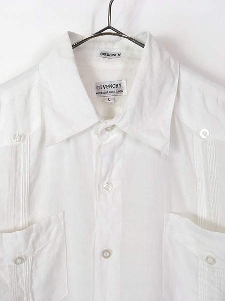 古着 90s GIVENCHY サイド プリーツ 100% リネン キューバ シャツ L
