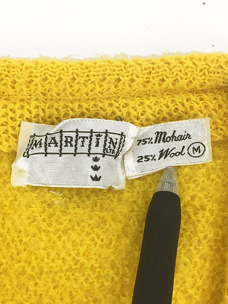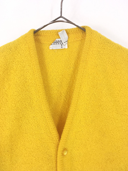 古着 60s MARTIN パール編み ソリッド イエロー モヘア ウール ニット カーディガン M