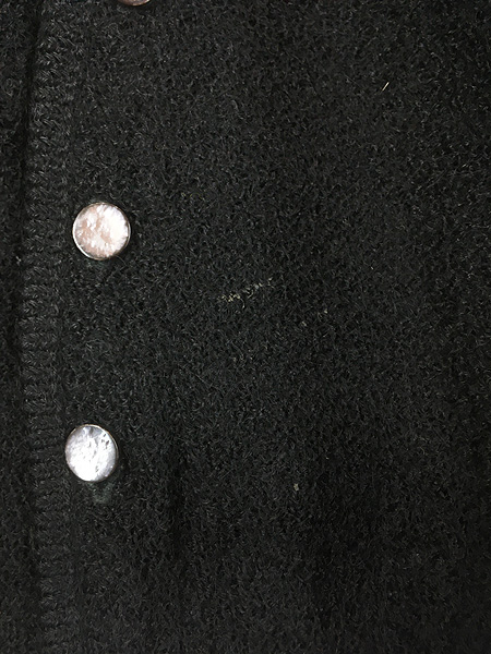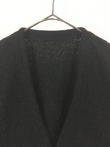 古着 60-70s パール編み ソリッド ブラック モヘア ウール ニット カーディガン XL位