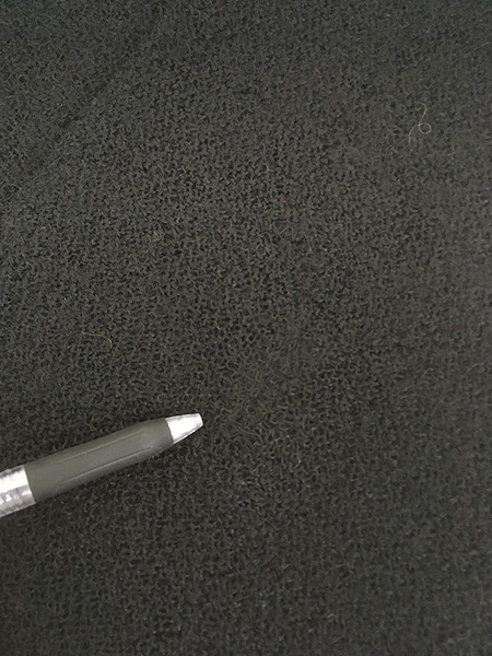 肌触りから判断して、モヘア混ウールだと思われるパール編みニット。