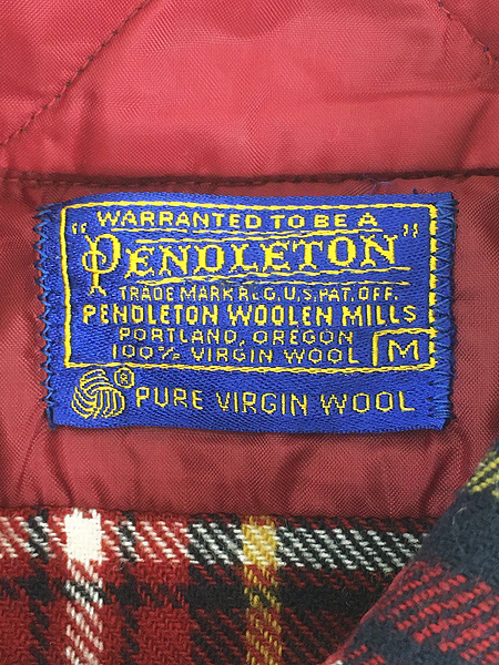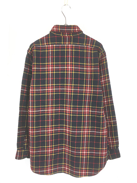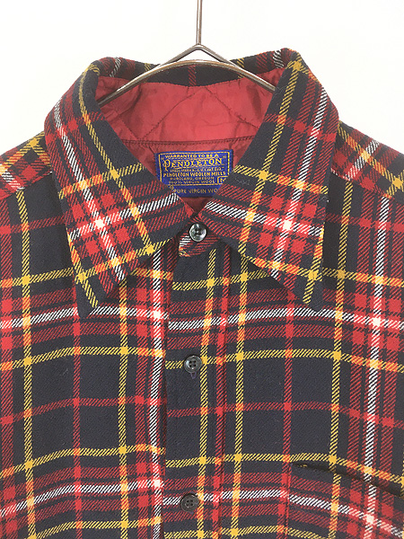 古着 70s Pendleton ダークネイビー チェック ウール シャツ M