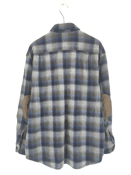 古着 00s Pendleton 好配色 ブルー オンブレ シャドー チェック ウール シャツ L