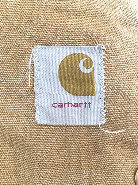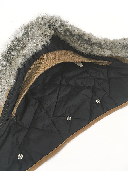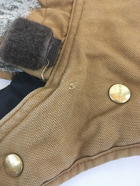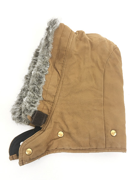雑貨 古着 80s USA製 Carhartt 裏地 キルティング ブラウン ダック フェイクファー付 後付 アタッチメント フード 帽子